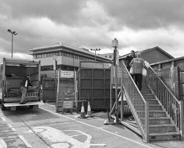 在倫敦卡姆登區(qū)的垃圾回收中心,市民開車來(lái)扔垃圾