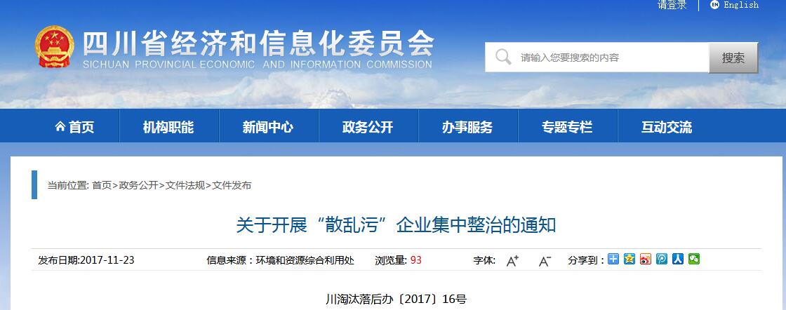 日前,四川經(jīng)信委印發(fā)關(guān)于開展“散亂污”企業(yè)集中整治的通知。全文如下: